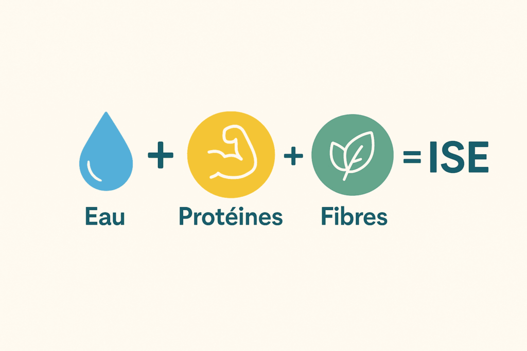 Il combine eau, protéines et fibres dans une formule interne, ramenée à la portion saisie.